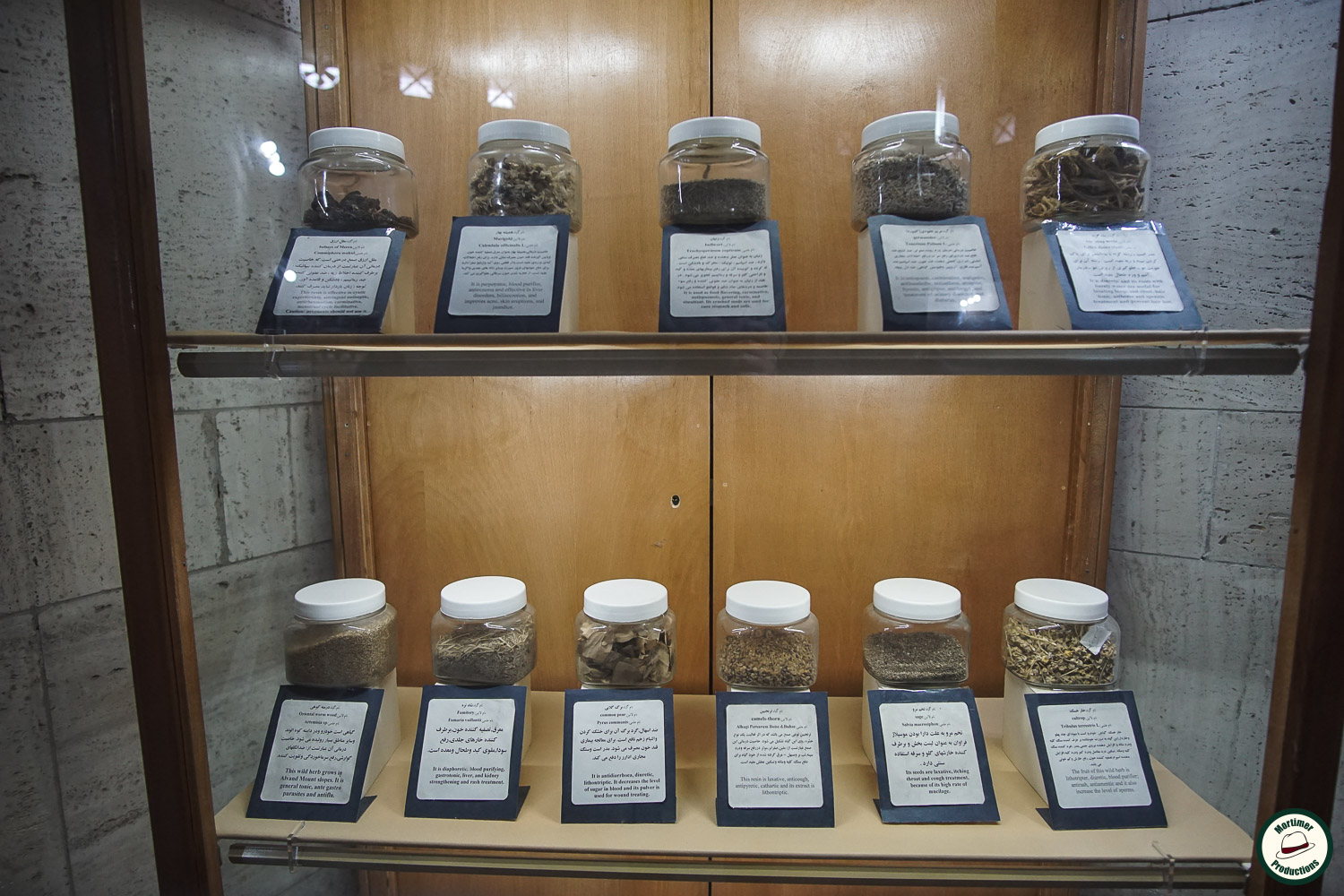 Nachdem wir unser Mittagessen hinter uns hatten, fuhren wir ein weiteres bedeutendes Mausoleum an. Die Grabstätte des, in Hamadan verstorbenen berühmten persischen Arztes Avicenna. Avicenna, der sich zu Lebzeiten selbst mit vielen verschiedenen Wissenschaften beschäftigt hatte, auch mit Kunst und Philosophie, war sowohl als Arzt als auch als Dozent tätig. In seiner Zeit am Hof in Hamadan wurde er sogar zum Wesir des Emirs ernannt. Das Mausoleum zeigt einige interessante Ausstellungsstücke und ließ uns erahnen, wie fortschrittlich Avicenna Medizin im elften Jahrhundert praktizierte. Es gab einige Lehrbücher zusehen, oder kleine Glasfläschchen verschiedener Größe und Farbe, welche als Medizinfläschchen dienten. Besonders beeindruckend war eine Sammlung von Kräutern und Naturheilstoffen, kategorisiert inklusive genauer Beschreibung von Anwendungsfall und Anwendung. Die Sammlung war selbstverständlich nachgestellt, aber es war beeindruckend wieviel Avicenna zu dieser Zeit über die Mittel, die ihm zur Verfügung standen, wusste und wie umfangreich die Sammlung verschiedener Arzneistoffe war. Einiges davon findet heute noch Anwendung.