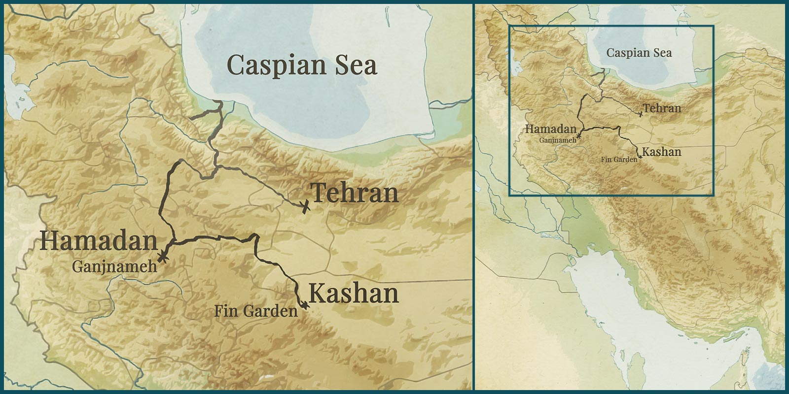 Nachdem wir Hamadan hinter uns gelassen hatten auf unserem Weg Richtung Süden, war unser nächstes Ziel Kashan. Doch auf dem Weg dorthin machten wir erstmal halt bei Ganjnameh, nur wenig Kilometer südlich von Hamadan. Der Ort selbst hat genauso wie Hamadan einen Bezug zum alten Mederreich Ekbatana. Ganjnameh liegt auf der alten persischen Königsstraße, die nach Mesopotamien führte. Hier fand man zwei alte Inschriften in Keilschrift, welche jeweils von den alten Königen Xerxes und Darius erzählen. Die Texte sind größtenteils identisch und scheinen die Königswürde der jeweiligen Könige durch den Gott Ahura Mazda zu rechtfertigen.