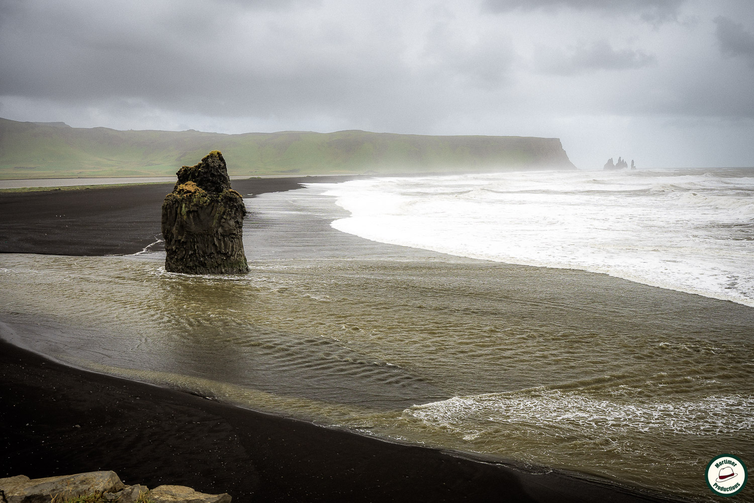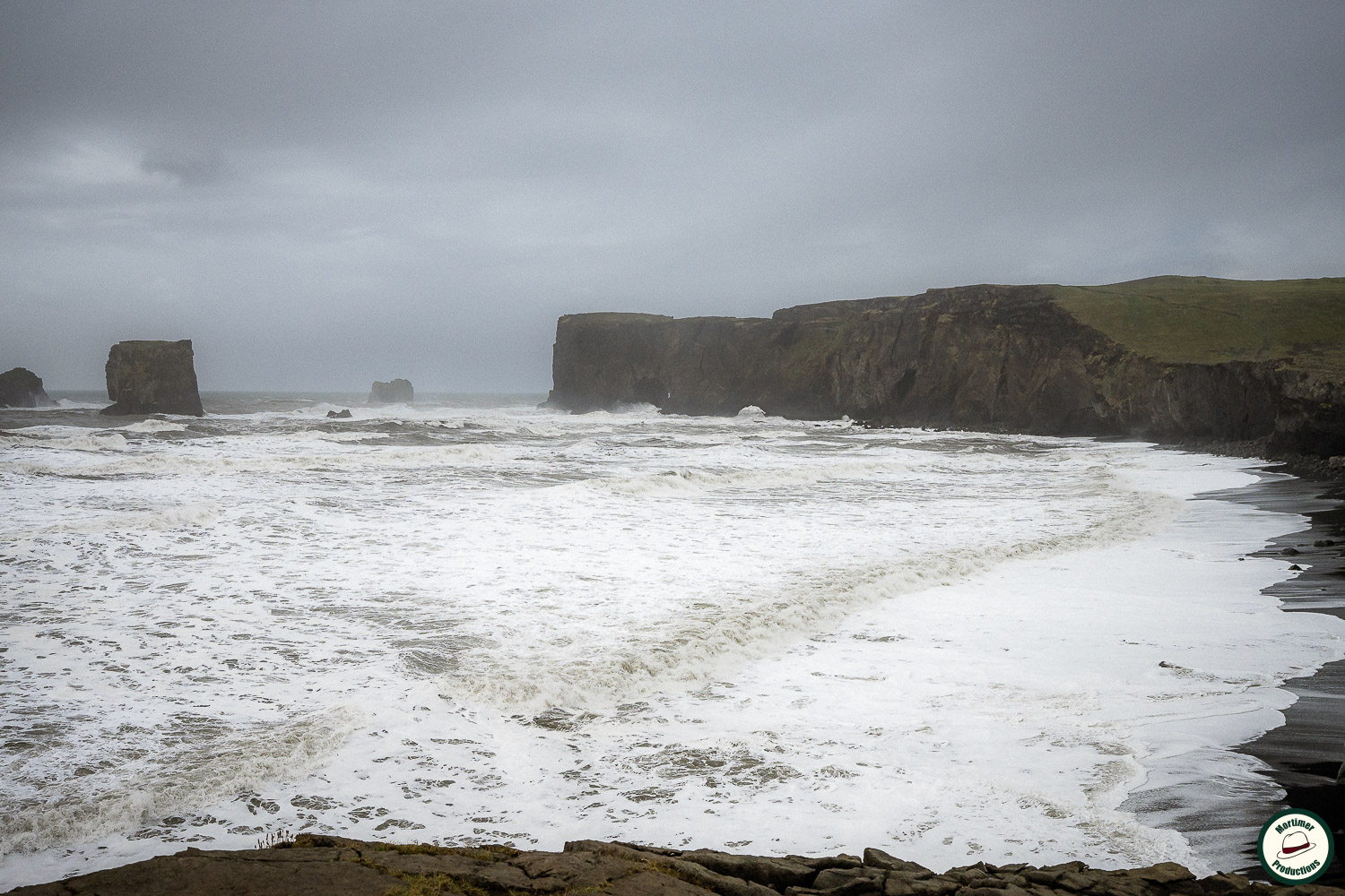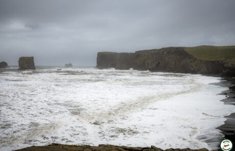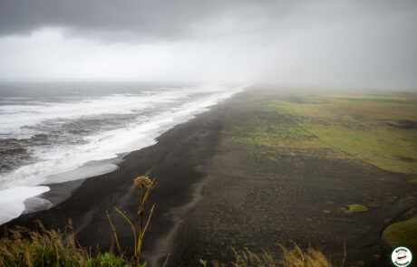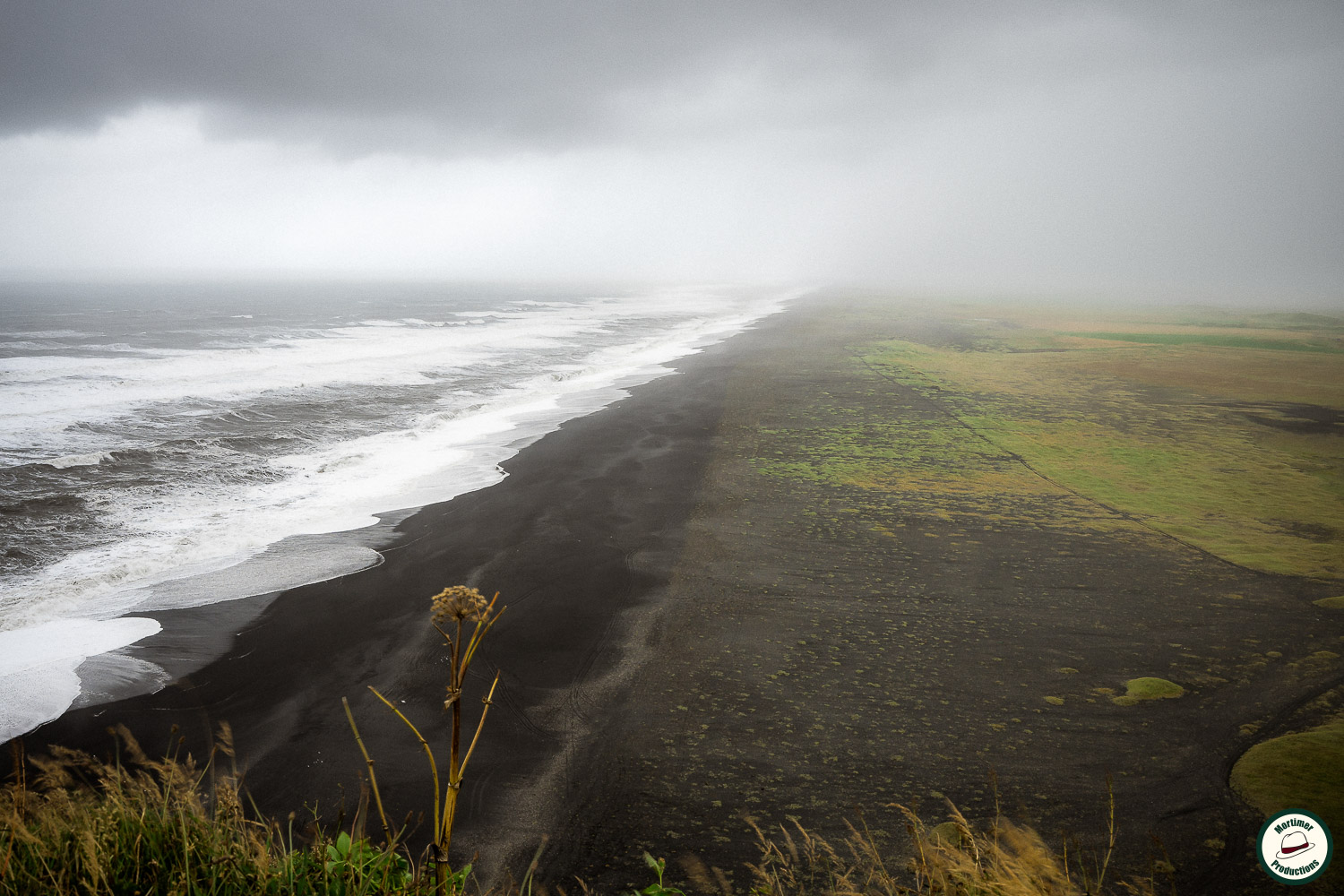 Nach unserer Ankunft am südlichsten Punkt unserer Reise fuhren wir erstmal in die Stadt Vík. Es war ein Regentag und ich brauchte eine neue Regenjacke, die ich glücklicherweise beim örtlichen Outdoor-Ausstatter erwerben konnte. Nach einem Tässchen Kaffee in einem umgebauten Schulbus-Café fuhren wir noch auf die Halbinsel Dyrhólaey.