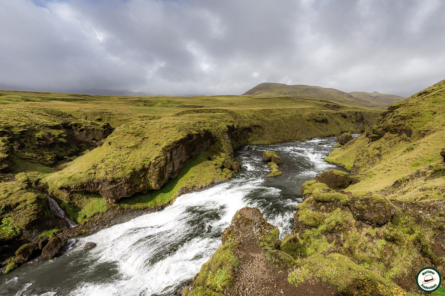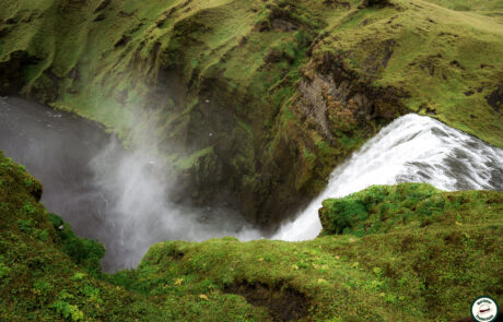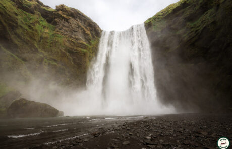 Wenn der Fluss dann seinen Weg aus dem Hochland in Richtung Ozean fortsetzt, bildet er am Ende mit dem Skógafoss noch einen beeindruckenden Wasserfall, an den man ganz nah herantreten kann, falls man keine Angst hat nass zu werden.