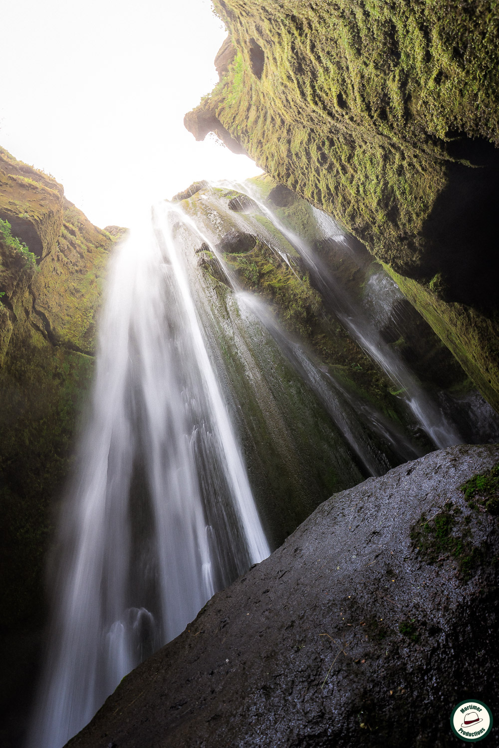 Da beide Wasserfälle relativ einfach zu erreichen sind, ist der Andrang der Touristen hier auch wieder sehr groß. Mit etwas Glück hat man aber in der Höhle des Gljúfrabúi ein wenig Zeit für sich. Eingehüllt im Wasserdunst ist der Blick nach oben dann sehr beeindruckend.