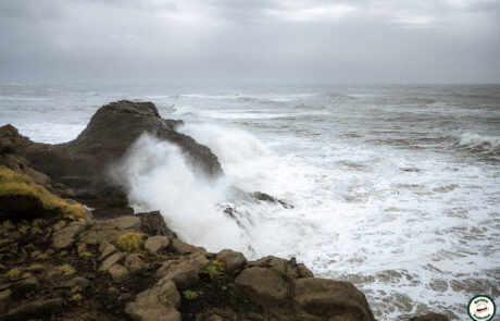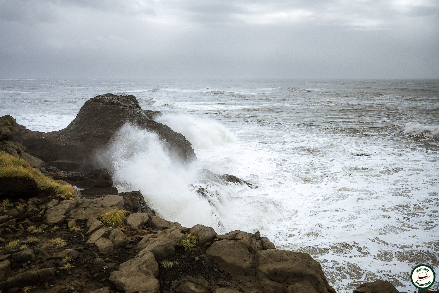 Das Wetter war über den Tag immer schlechter geworden und vor allem der Wind war extrem. Nach kurzem Aufenthalt auf der Anhöhe der Halbinsel mussten wir allerdings abbrechen, da wir uns kaum auf den Beinen halten konnten und ungelogen in der Hocke zurück zum Auto gehen mussten, da die Böen sehr stark waren. Die Aussicht war allerdings großartig und die Wellen dementsprechend beeindruckend.