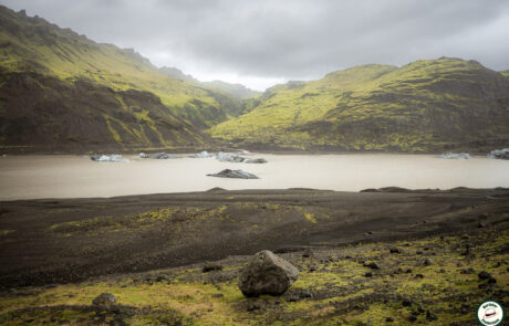 Ein weiterer Stopp in der Gegend war der Sólheimajökull. Hier kommt man mit dem Auto relativ nah heran und muss nicht so viel laufen, weswegen auch wieder viele Touristen vor Ort waren. Wir genossen bei einem kurzen Spaziergang die typisch isländische Kulisse um den Gletscher. Die Farben der Landschaft waren hier mal wieder skurril und beeindruckend.